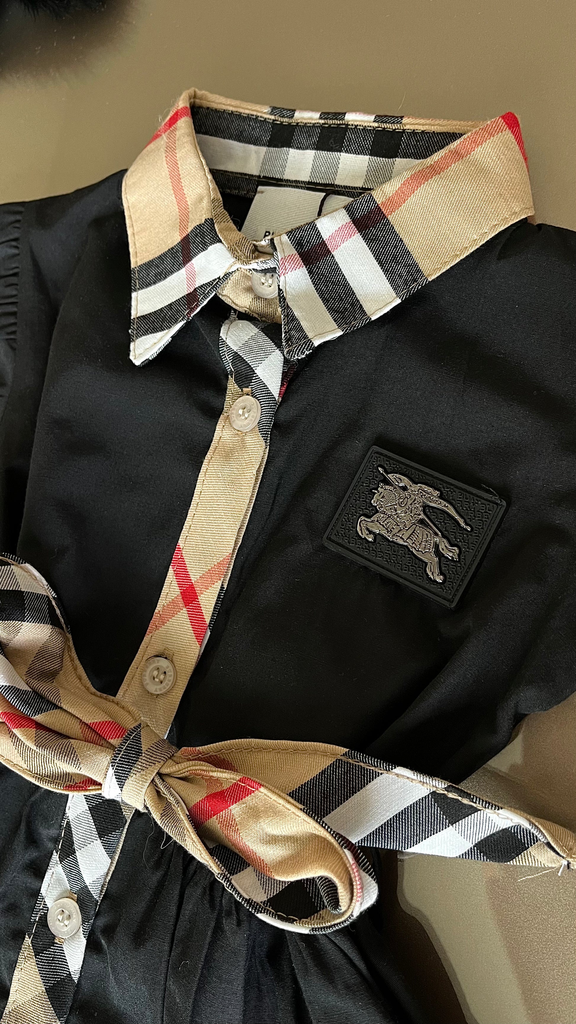 Shop onze Burberry jurk in het zwart. We hebben ook nog een vergelijkbare Burberry jurk in beige. De zwarte jurkjes vallen klein dus wij adviseren 1 of zelfs 2 maten groter te nemen.
